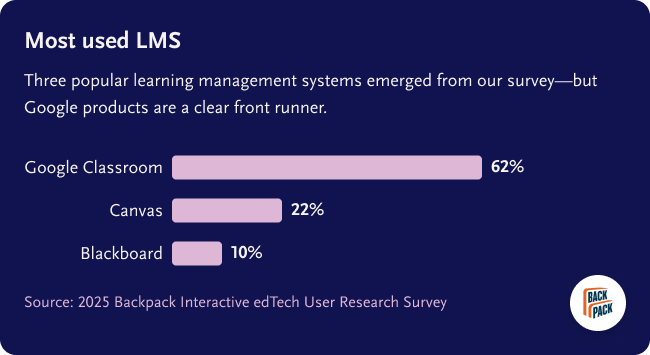 In fact, 62% of the educators we surveyed use Google Classroom as their Learning Management System (LMS).
