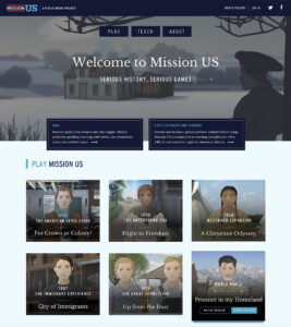 When we worked with WNET on their Mission US game platform, we presented a sophisticated design for middle and high school students. Mission US is a complex storytelling game that invites students to choose their own first-person adventure during famous moments in U.S. history. Mission US has stunning visuals and encourages complex decision-making, which makes it a compelling learning tools for students.