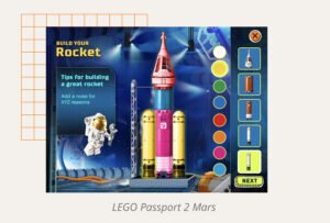 Launched on the 50th Anniversary of the lunar landing, LEGO’s Passport to Mars was designed to foster independent summer learning. A series of educational games, Passport to Mars teaches children ages 7-10 about engineering, teamwork—even space botany! Our project partner, Scholastic, validated all of the educational aspects of the product and helped extend the product’s reach into classrooms the following fall.